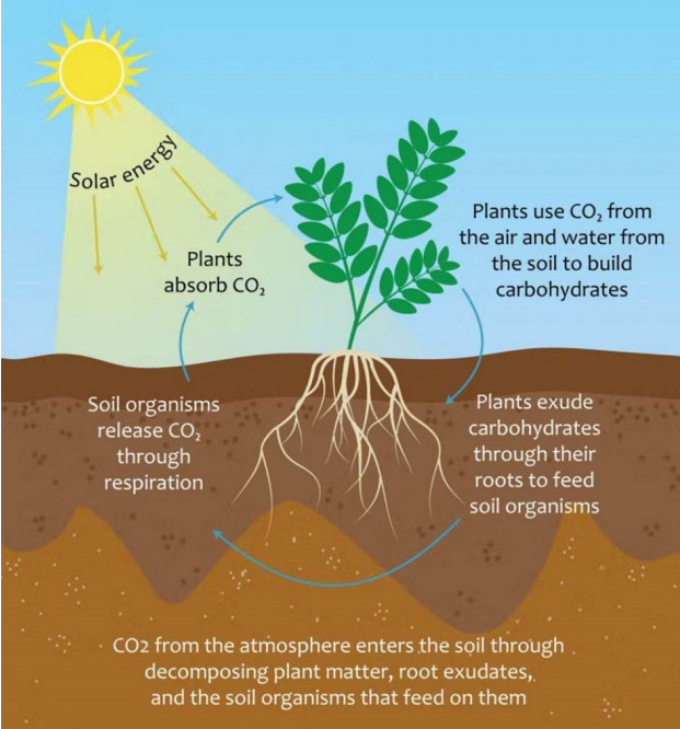The following graphic illustrates the carbon cycle, showing how carbon moves between the atmosphere, trees, soil, and oceans, and highlighting the critical role natural areas play in capturing and storing carbon.